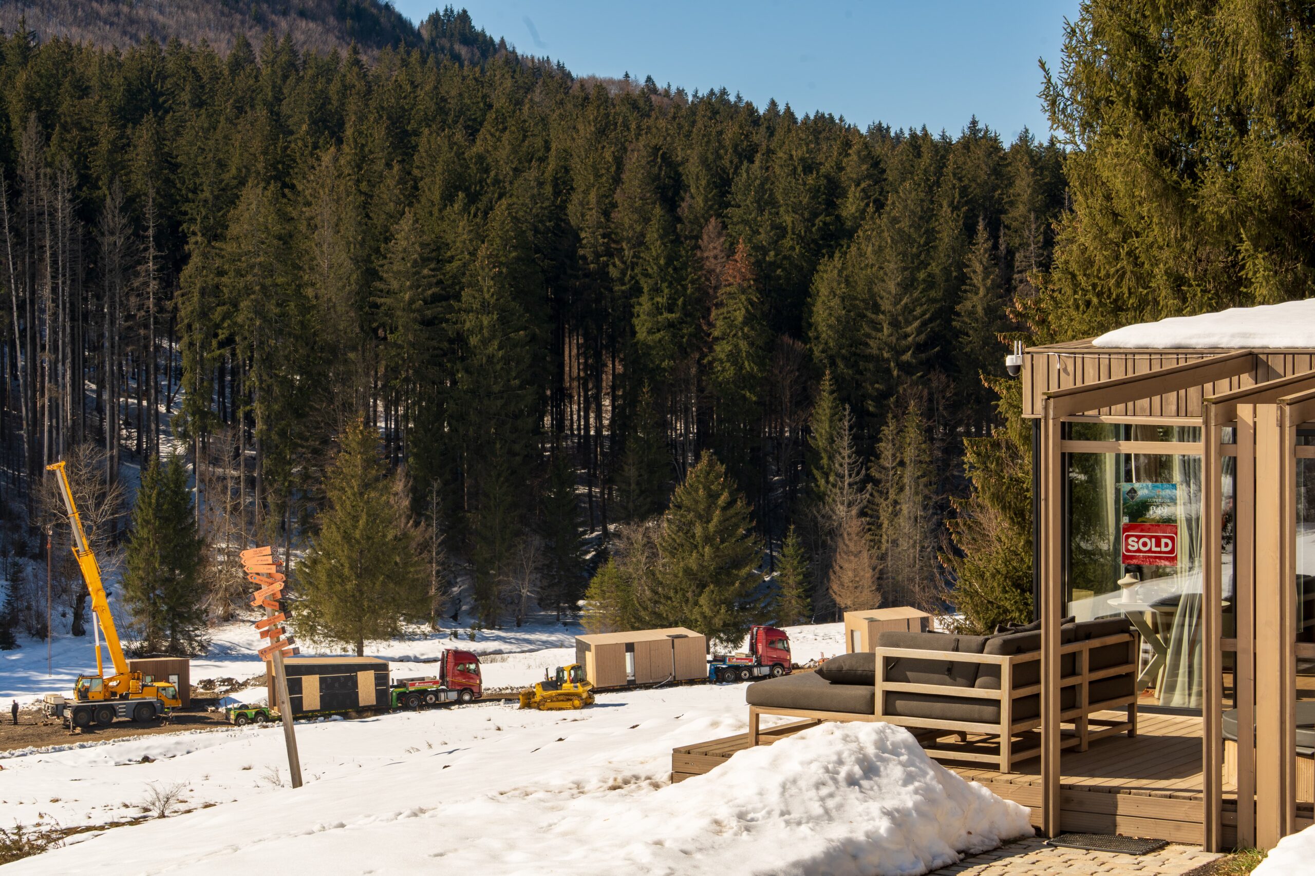 The Valley Resort krijgt vorm in een bijzondere en natuurlijke omgeving, waar de rust van de bergen en hedendaags comfort op een vanzelfsprekende manier samenkomen. Het project ontwikkelt zich in het hart van het indrukwekkende landschap van het Ciucaș-gebergte, en vordert stap voor stap in harmonie met de omgeving.