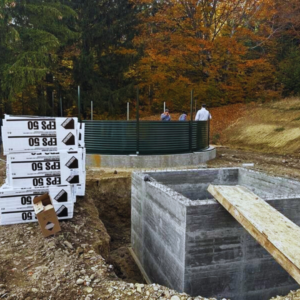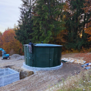 The water systems are being prepared, pumps soon to be installed, and the main reservoir already in place, ready to hold 114 cubic meters of water.
